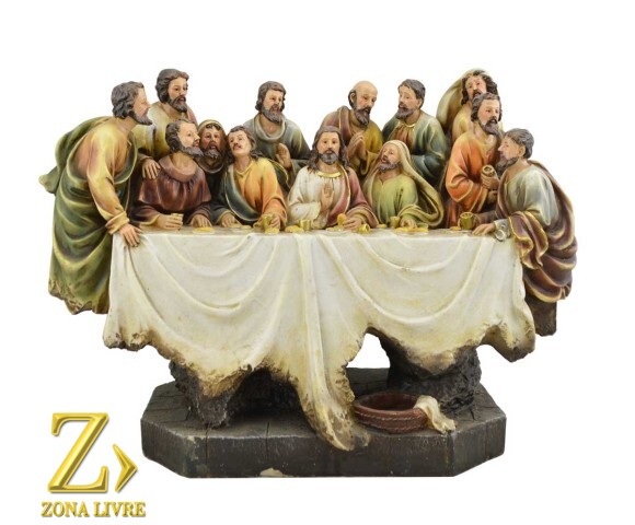 A Santa Ceia de resina é uma representação artística da famosa refeição compartilhada por Jesus Cristo com seus discípulos antes de sua crucificação. Feita de resina, essa representação tridimensional retrata Jesus e os doze apóstolos sentados em torno de uma mesa, capturando os detalhes e expressões faciais dos personagens. A resina é um material durável e de alta qualidade que permite uma reprodução realista da cena icônica na história cristã.