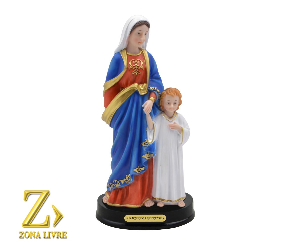 Com uma expressão suave e serena, as mãos estendidas, seu manto azul e com olhar compassivo, "Maria Passa na Frente" é uma expressão para invocar a intercessão e proteção da Virgem Maria em momentos de dificuldades, desafios ou situações perigosas. Essa invocação é feita como uma forma de confiar em Maria como mãe amorosa e poderosa intercessora diante de Deus.A expressão "Maria Passa na Frente" sugere que Maria caminha à nossa frente, abrindo caminho, resolvendo problemas e nos guiando através das dificuldades que enfrentamos em nossas vidas. É uma forma de reconhecer sua presença ativa em nossa jornada espiritual e sua prontidão para nos auxiliar.A invocação de "Maria Passa na Frente" é uma manifestação popular de devoção mariana e um lembrete do papel especial que Maria desempenha na vida dos católicos como protetora, intercessora e guia espiritual. Ela é vista como uma mãe amorosa que está sempre pronta para nos ajudar e nos conduzir ao encontro de seu Filho, Jesus Cristo.