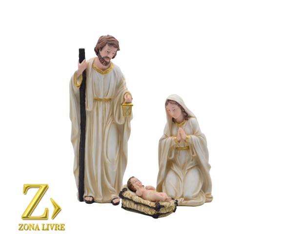 - Itens Inclusos: 3 figuras (Maria, José e Menino Jesus).